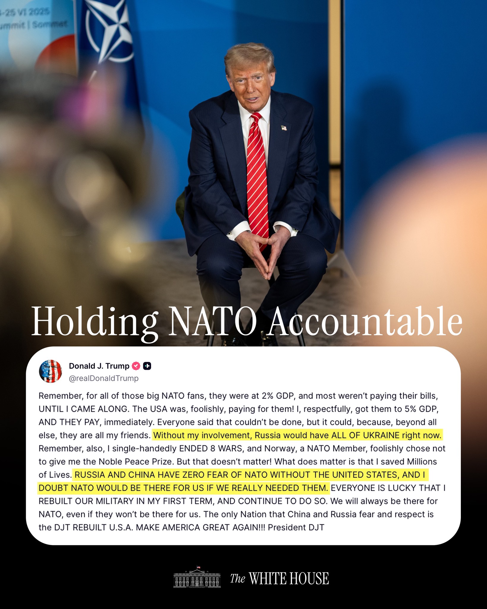 President Donald J. Trump stirred fresh debate over U.S. foreign policy and transatlantic security after posting on his social media platform that “we will always be there for NATO, even if they won’t be there for us,” and asserting that “the only Nation that China and Russia fear and respect is the DJT rebuilt U.S.A. MAKE AMERICA GREAT AGAIN!!!”